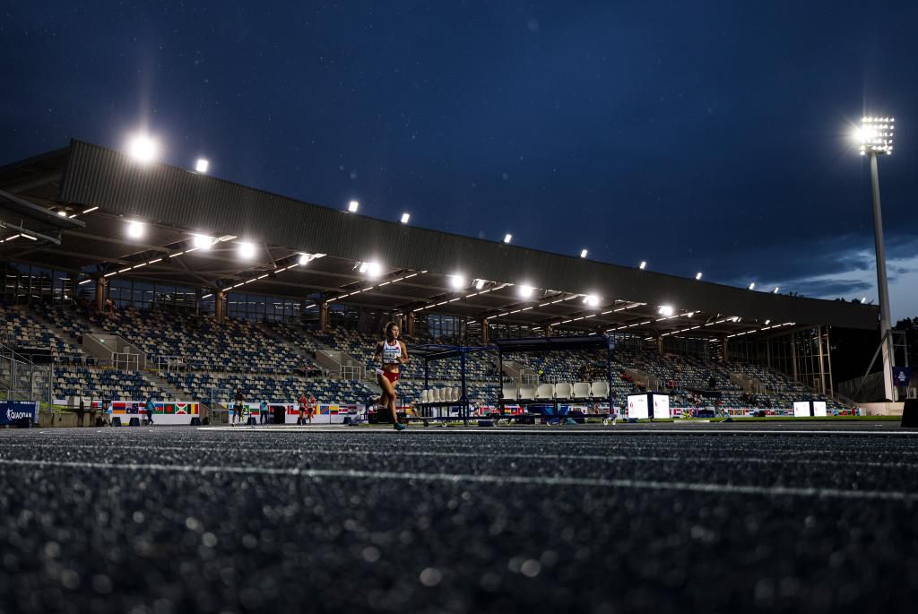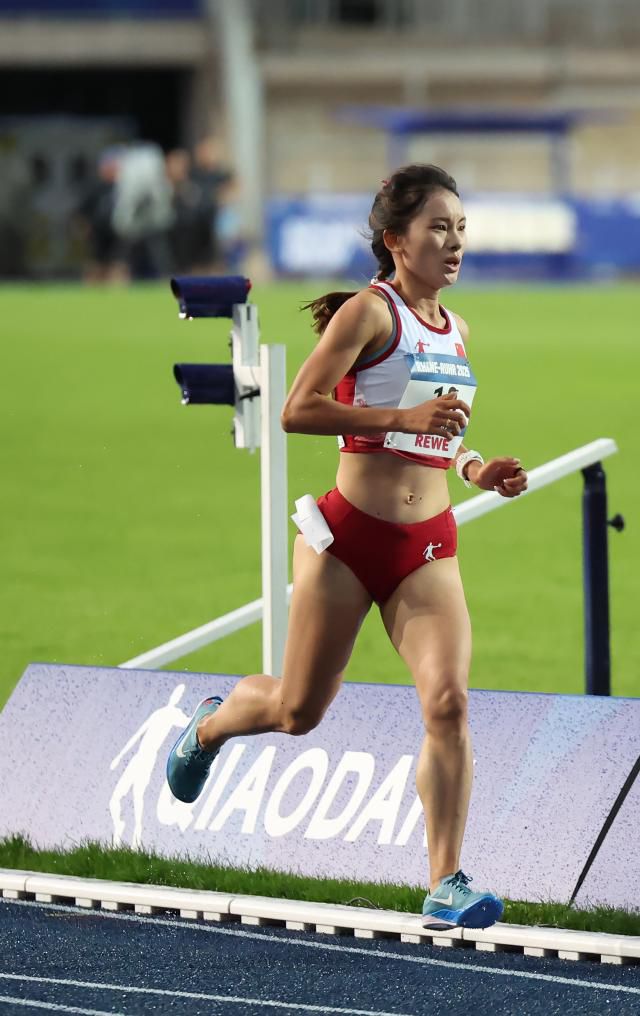 马秀针在2025年莱茵-鲁尔世界大学生夏季运动会田径女子10000米决赛中。新华社记者 张帆 摄