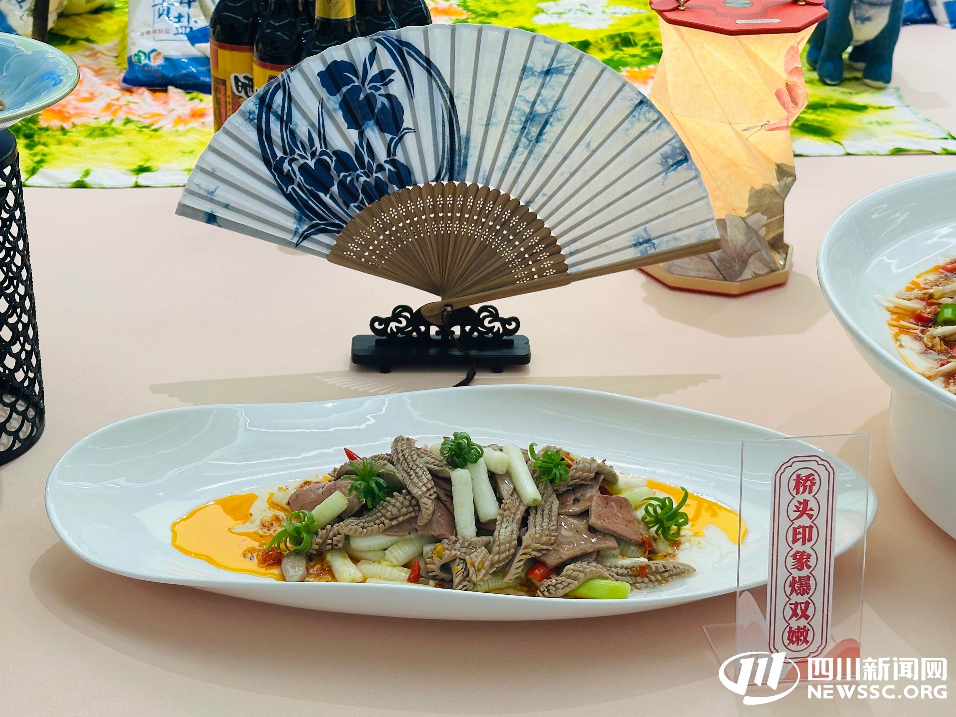 在另一侧的美食展示区同样人气爆棚,来自自贡4区2县的16道特色菜品集中呈现了盐帮菜的独特魅力。来自汇东大酒店的张老师热情推荐:“冷吃兔是盐帮菜的代表,现在已成为我们当地的网红美食;富顺豆花细腻滑嫩,配上特制蘸水风味独特;火爆双脆则完美展现了我们盐帮菜‘快炒嫩鲜’的特点。”