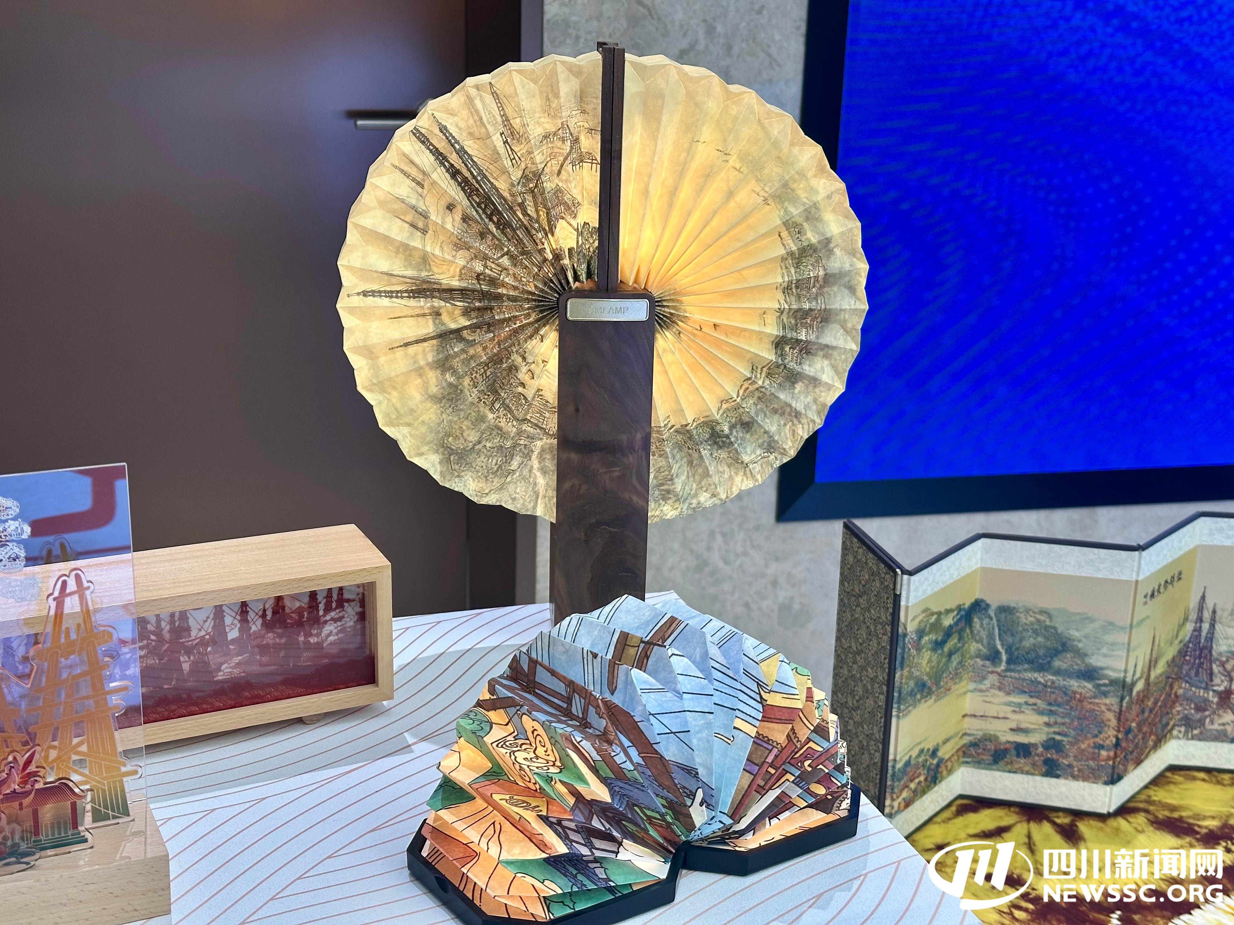 憨态可掬的熊猫瓷器捆扎灯、融入“天车”造型的井盐文化折纸灯、集合荣县大佛等景点的创意冰箱贴......7月28日,在“万千气象看四川·文旅融合发展”系列主题新闻发布会自贡专场上,会场外的展示区热闹非凡。30余种富有地方特色的文创产品和美食集中亮相,吸引着与会者的目光。