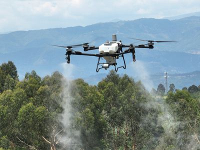 大疆T70P正在执行森林病虫害防治工作。
