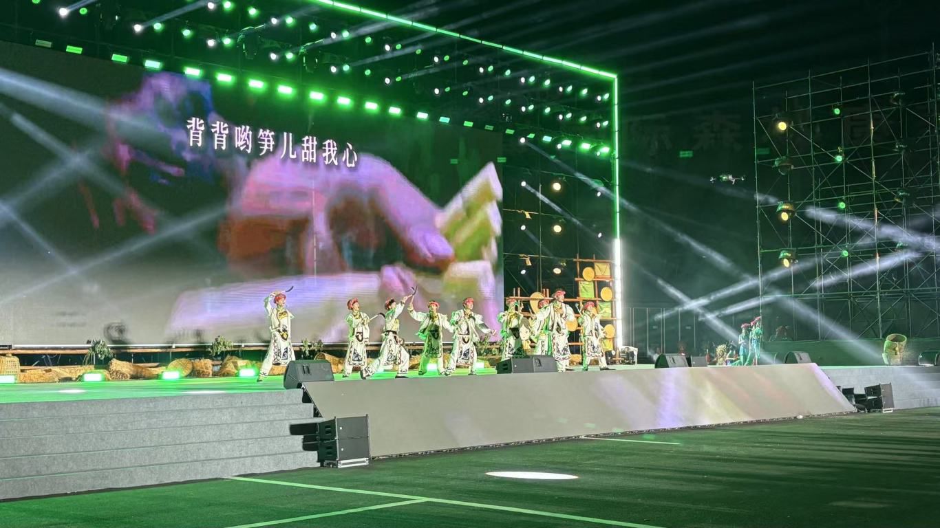 舞台上,“洪山雅水等你来”“羌风楚韵俏瓦屋”“和美乡村入画来”三个篇章次第展开,一场场充满“村味”的演出接连上演。表演唱《山歌唱得亲人来》用嘹亮山歌邀约八方来客,情景剧《乡饮酒礼》重现传统礼仪的古韵,舞蹈《茶香悠悠》将洪雅茶叶的清新雅致融入肢体语言……这些源自洪雅民俗、非遗与山水的原创节目,把“洪山雅水”的灵秀、“羌风楚韵”的厚重搬上舞台,让台下游客沉浸式感受“村晚”独有的烟火气。“从成都来避暑,没想到赶上这么热闹的晚会,节目里全是洪雅的故事,比单纯看风景更有味道!”成都游客张女士的感慨,道出了众多游客的心声。