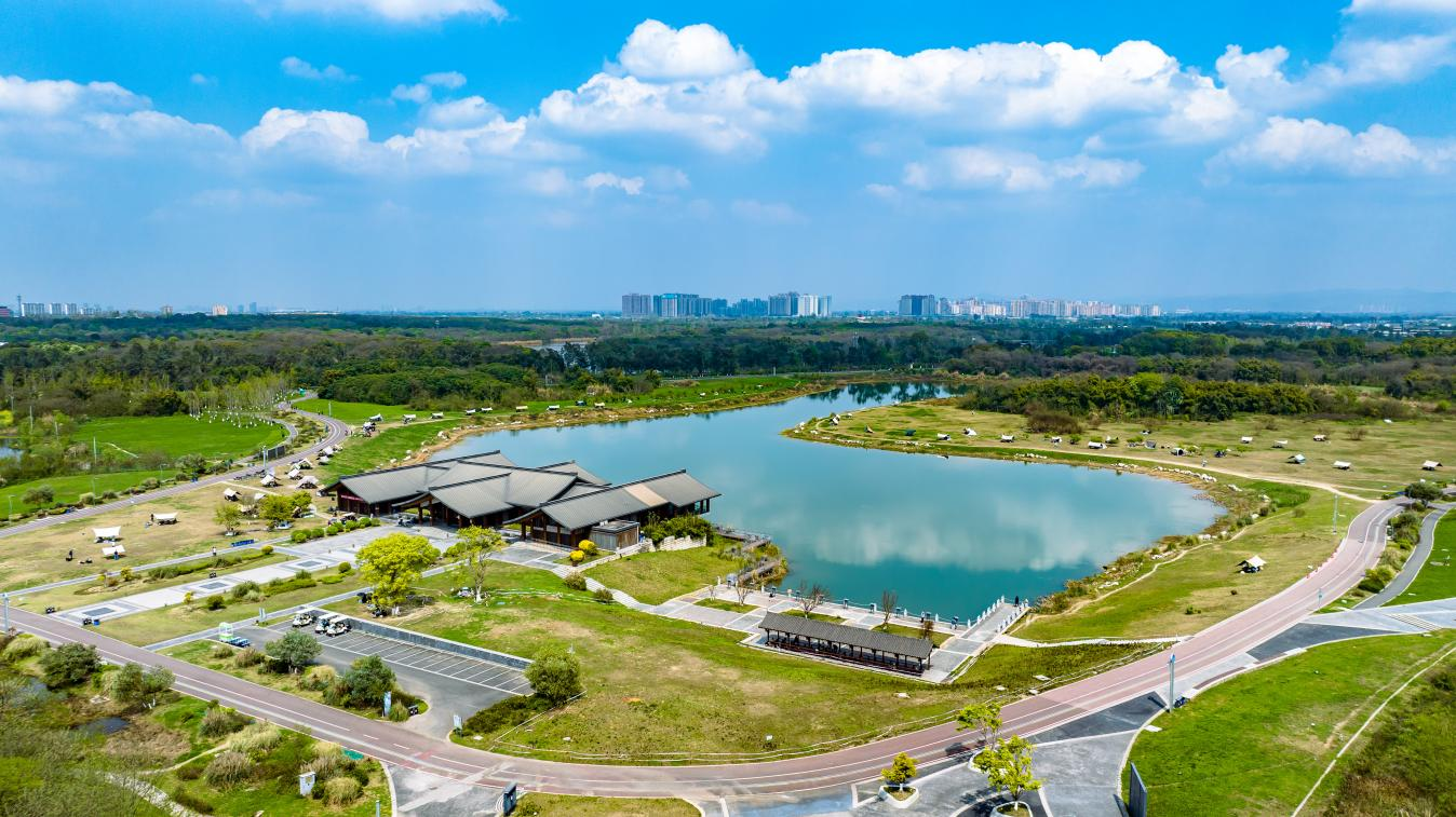 这座赛场地处成都天府绿道重要节点—青龙湖湿地公园腹地,这里不仅是成都最大的湿地公园,更以其独特禀赋成为射箭赛事的理想选择:区域内平缓开阔的草地与起伏的杂木林,恰好匹配射准射箭对平坦地势的要求,以及野外射箭所需的地形变化。