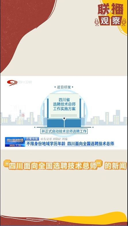 7月31日的《四川新闻联播》节目,报道了“四川面向全国选聘技术总师”的新闻。今天,我们就专门来聊一聊它——“技术总师”!