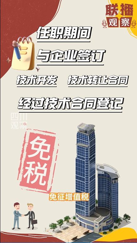 甚至有一些我们都没想到的细节,政策已经提前帮你安排了。比如,技术总师任职期间与企业签订技术开发、技术转让合同并经过技术合同登记的,企业可按相关规定免征增值税。