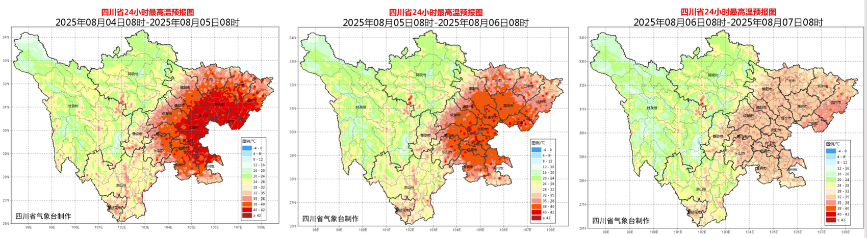 本周前半段,四川盆地高温依然强悍,部分地区还可能出现破纪录的情况。据四川省气象台预报,8月4日至6日,盆地大部以多云天气为主,部分地方最高气温38℃~40℃,局地可达41℃或以上,5日至6日盆地部分地方有中雨,局部大雨到暴雨;川西高原和攀西地区多分散阵雨或雷雨,局部中雨到大雨。