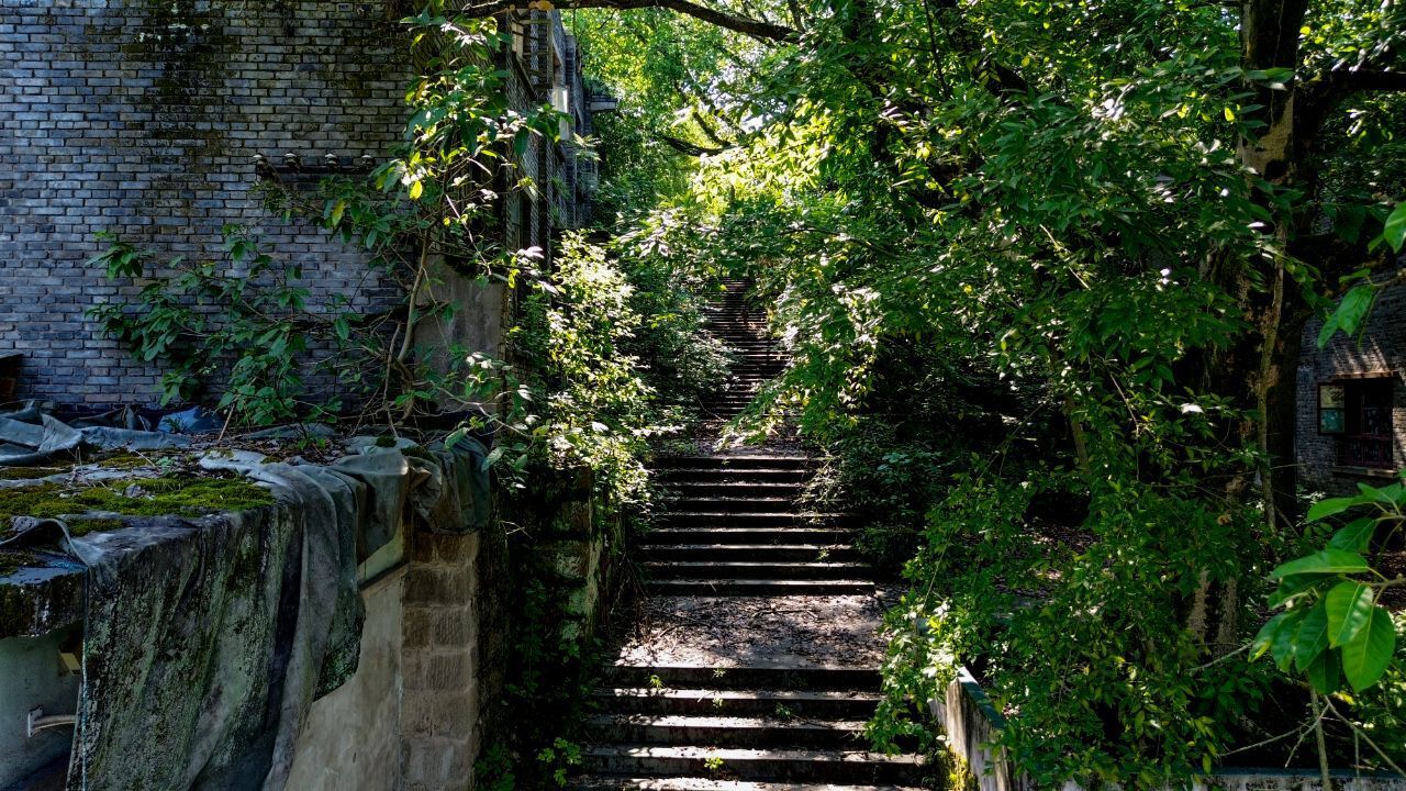 走在064基地,一面面墙体印刻着岁月的沧桑,阳台上带着几分颓丧的仙人掌还在艰难苟存,院落却成了杂草树木野蛮生长的空间,单人无法合围的梧桐树犹如沉默的哨兵在守护着这里的威严,当你拾阶而上,腐叶下湿润的青苔仿佛在倾诉多年的寂寞。而当你轻步走过树阴下未曾改变的水泥路,时间却又仿佛定格在那一段激情燃烧的岁月。