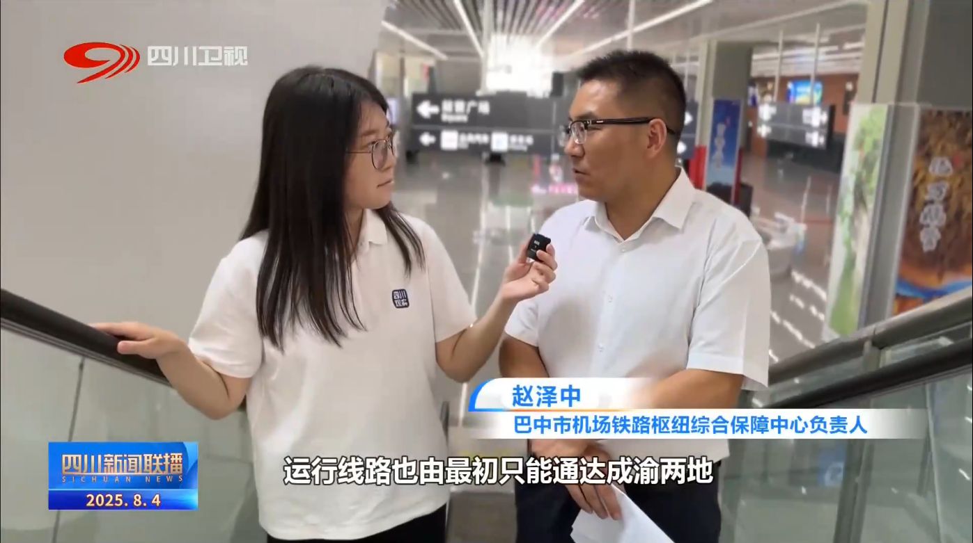 巴中市机场铁路枢纽综合保障中心负责人 赵泽中:运行线路也由最初只能通达成渝两地,逐步实现了直达珠三角、长三角等10个省、市、自治区。