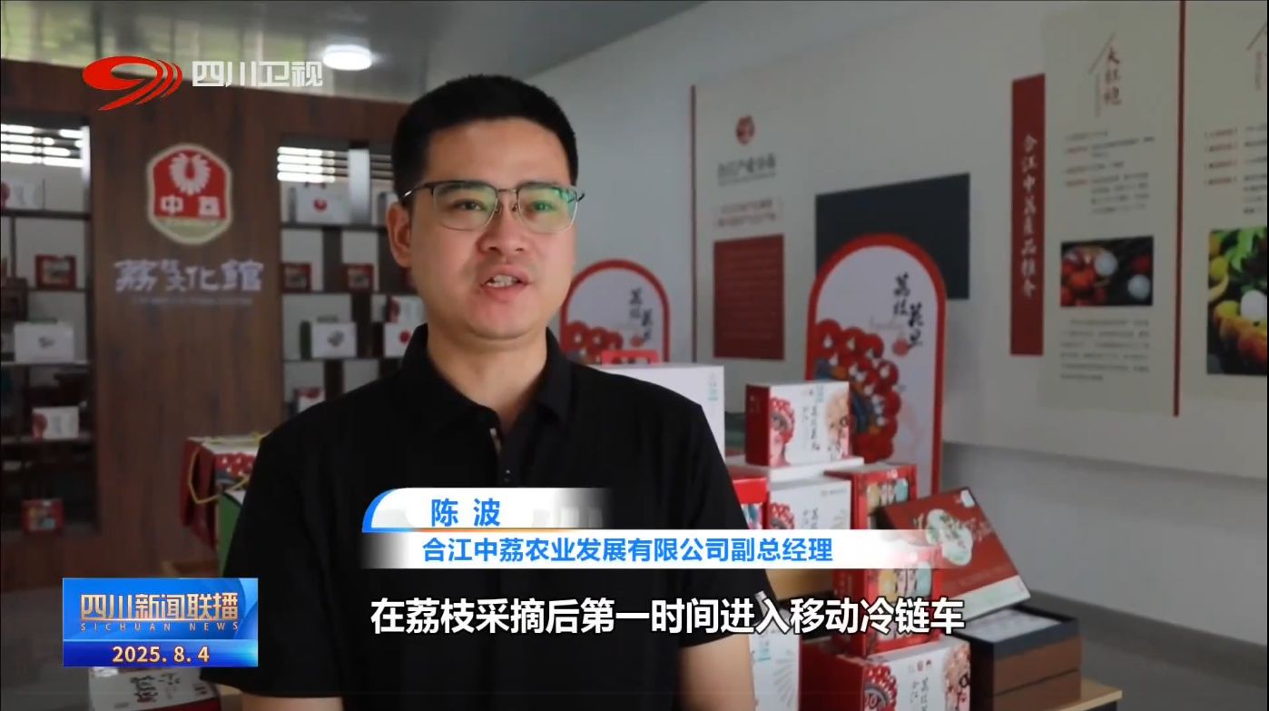 合江中荔农业发展有限公司副总经理 陈波:在荔枝采摘后第一时间进入移动冷链车。迅速将果心温度降至3度左右,再配合0至5℃的物联网冷链系统运输,能将保鲜期从传统的3至5天延长至15天,甚至更长。