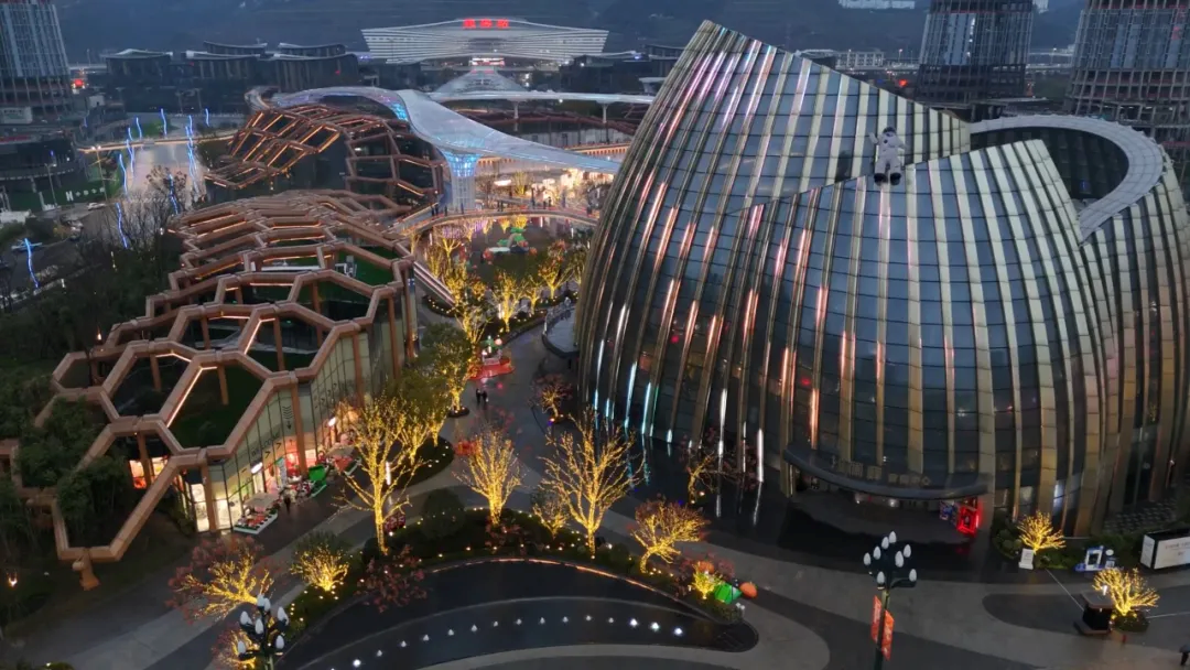 以高铁站为核心,宜宾高铁南片区构建起了半径500米高强度开发圈:地上地下空间联动开发,商业、办公、居住功能垂直叠合,实现“出站即入城、通勤零换乘”。这彻底改变了传统高铁站“孤岛化”问题,使交通枢纽转化为城市活力中心。