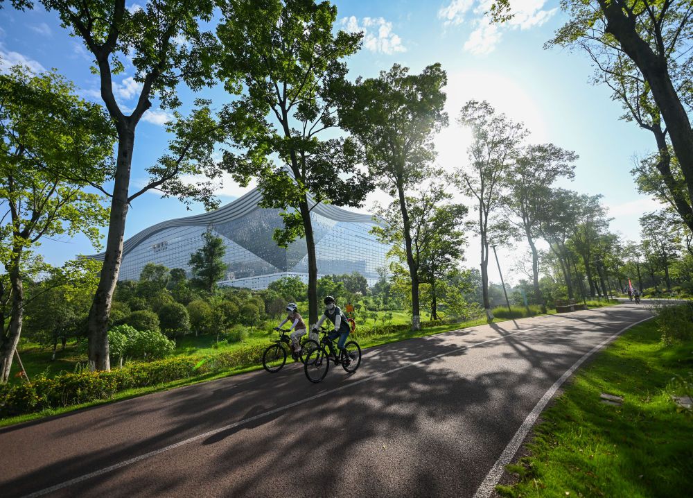 资料图:人们在成都高新区桂溪生态公园骑行 。新华社记者 王曦 摄