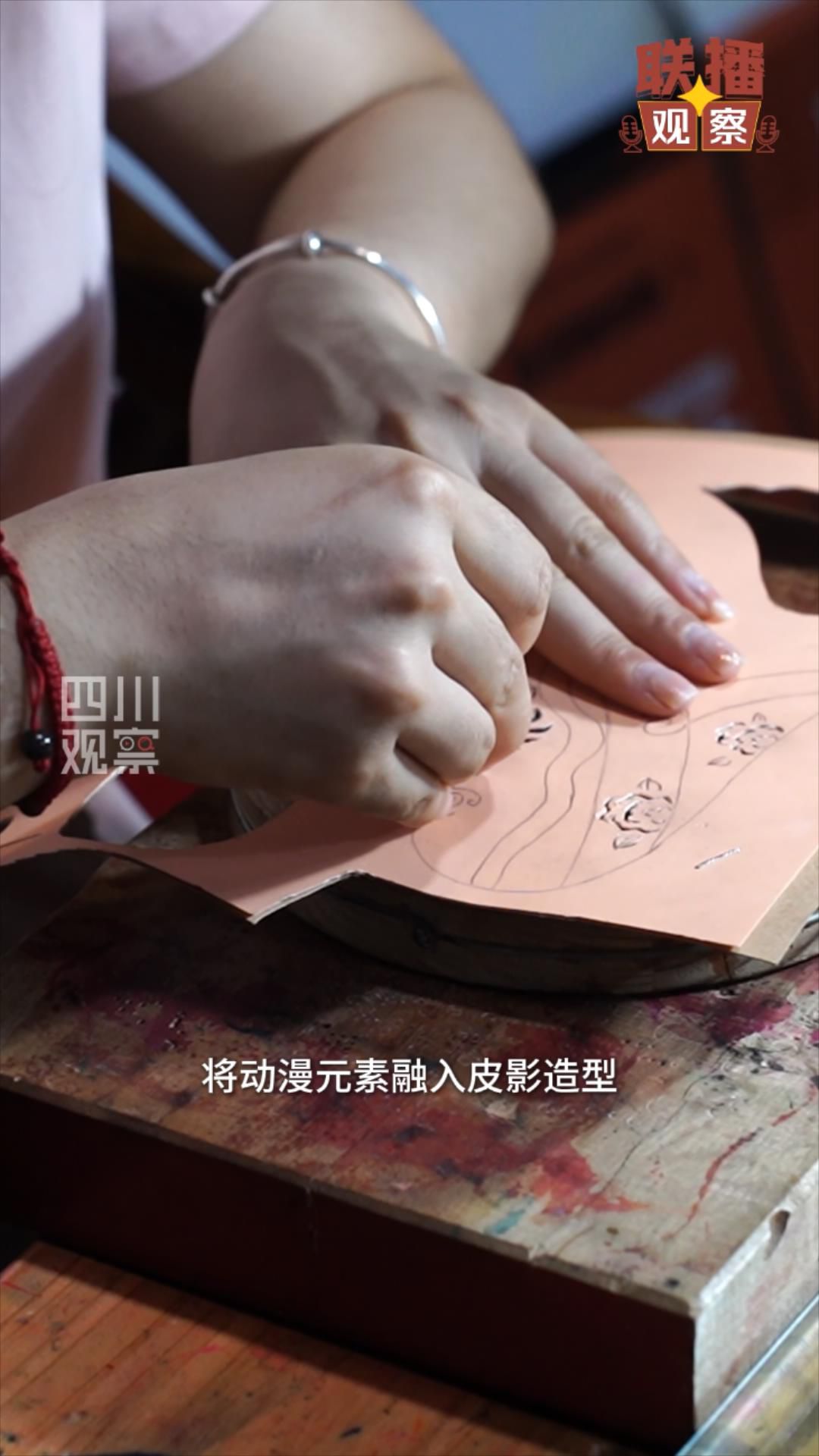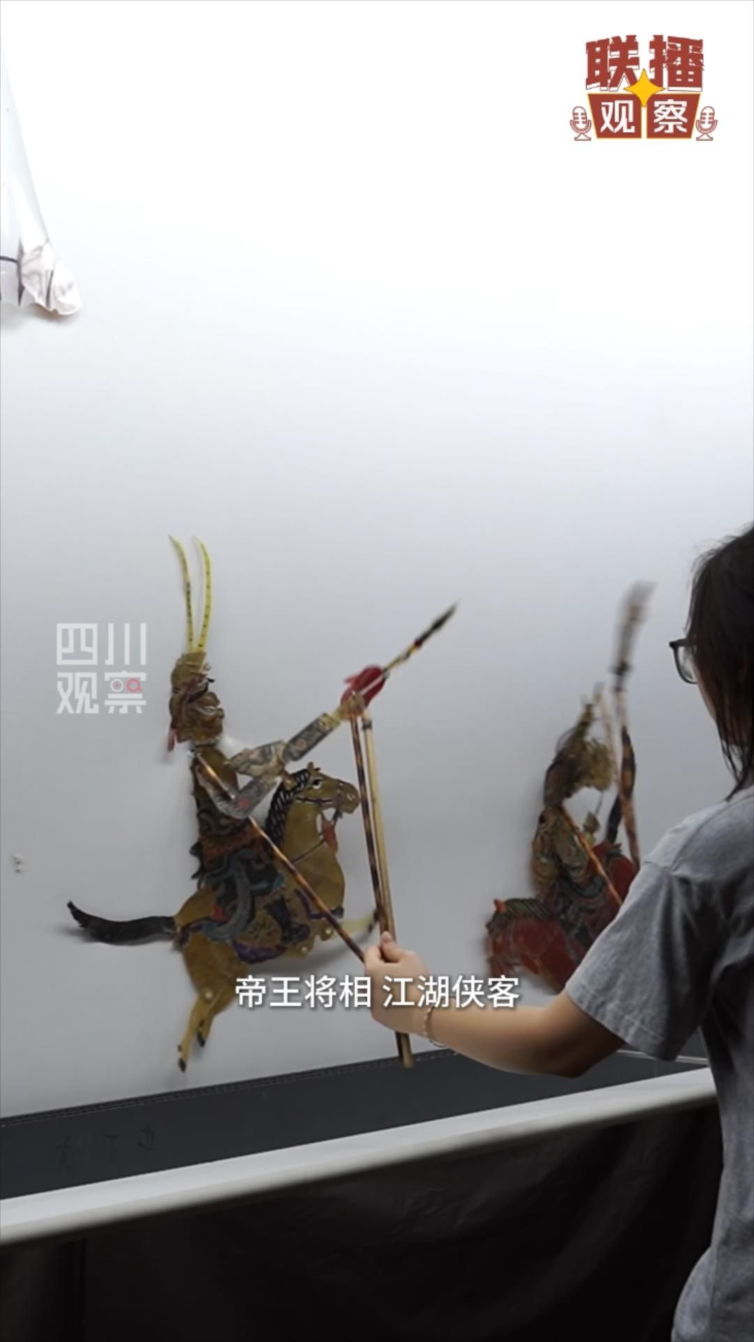 幕布之后,指尖翻飞。牛皮雕刻的人物在光影中腾挪跌宕,川剧高腔裹挟着巴山蜀水的豪迈,帝王将相、江湖侠客瞬间鲜活重生。“一件皮影要经过30多道工序,从牛皮到成品至少8天。”国家级非物质文化遗产代表性传承人王彪,指着手中的皮影向观观介绍,“人物面部的鱼尾纹等细节,都是让角色鲜活的关键。”