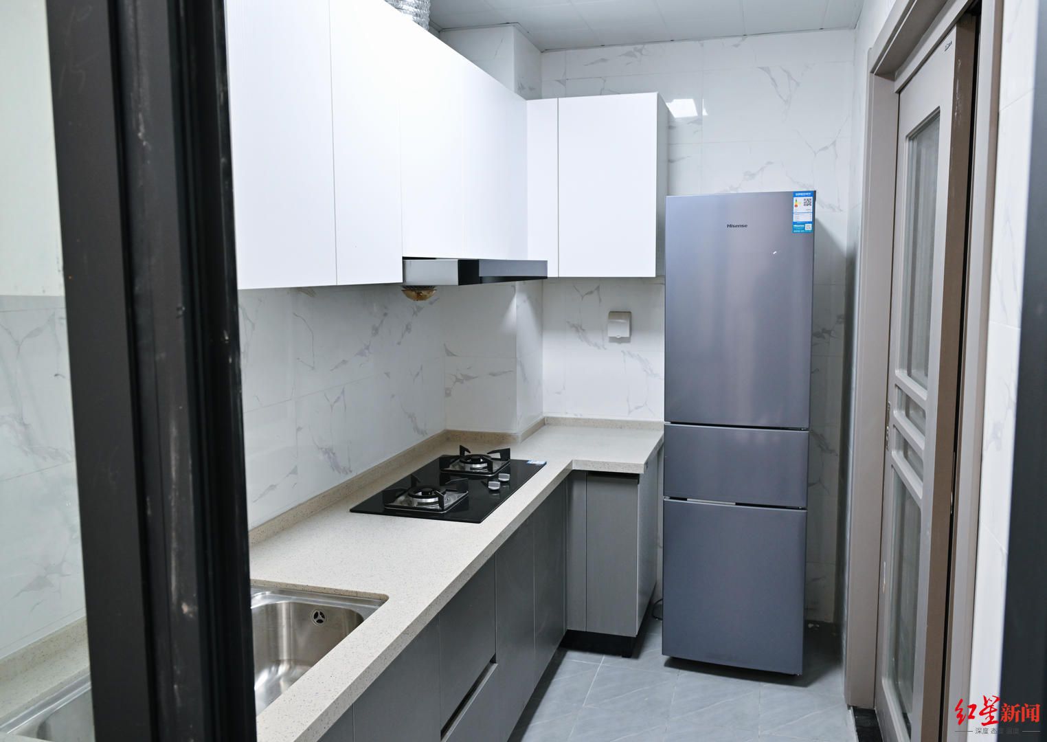 记者走进位于一栋楼里的4楼的92平方米居室内,刚进门就看到,屋内餐桌、沙发、茶几等家具一应俱全。还有崭新的冰箱、烟机灶具、洗衣机等家电,完全可满足入住人员的日常生活所需。