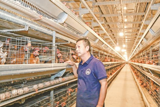 8月4日,广安高垭口生态农业有限责任公司工作人员在检查蛋鸡的健康情况