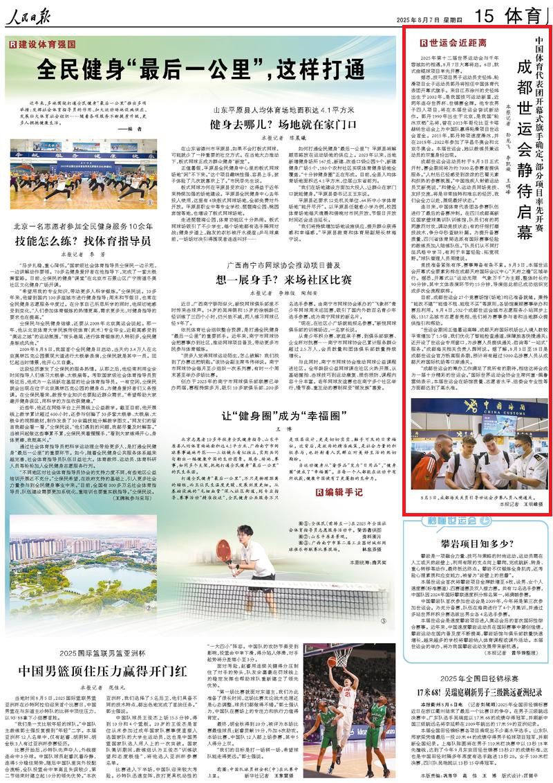 成都世运会运动员村于8月3日正式开村,赛会期间将为约7000名参赛者提供服务。“入村后已经感受到浓浓的巴蜀元素和炽热的参赛氛围。”中国残疾人射箭运动员艾新亮说,“和健全人运动员同场竞技、友好交流,将是非常独特和难忘的经历,我们会全力以赴,展现最好状态。”