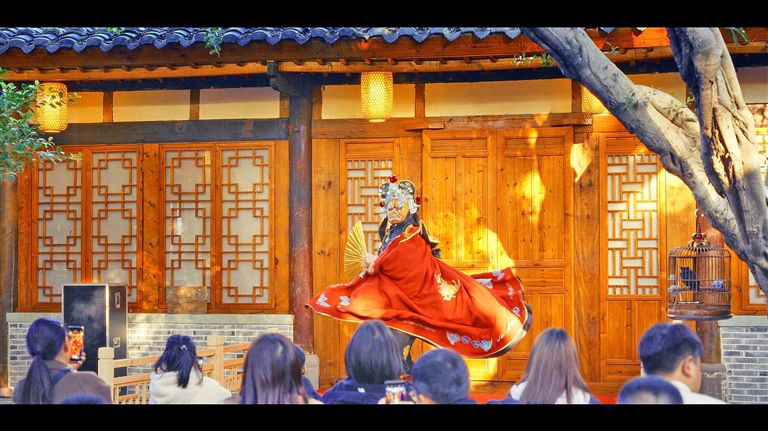 夜幕降临,书院的红灯笼次第亮起。最后一曲金钱板余音绕梁,游客们仍意犹未尽。