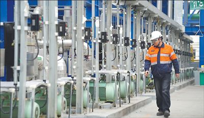 雅保四川新材料有限公司员工正在巡检生产设备。