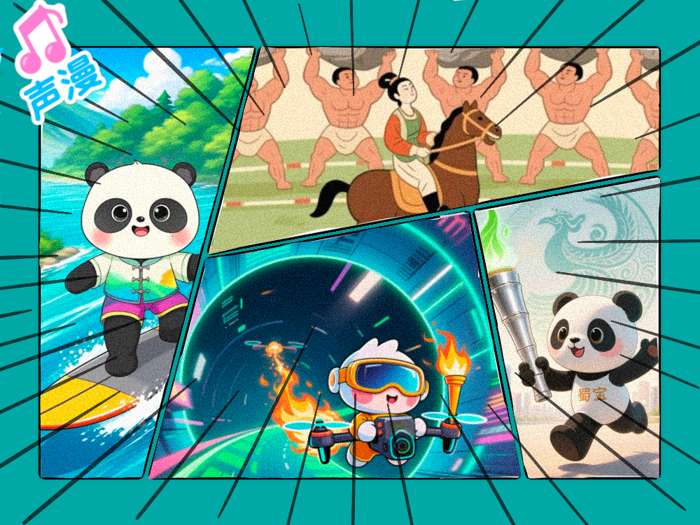今天,“声漫”邀请世运会吉祥物“蜀宝”和“锦仔”一起聆听成都千年体育交响。让我们“声”临其境,穿越古今蜀地体育时空。闭上眼,聆听战国水陆攻战纹铜壶上拉弓习射的铿锵回响、宋代童子抱鞠俑的嬉笑欢语、马球俑的奔腾蹄声——千年体育魂,在文物低语中传承不息。