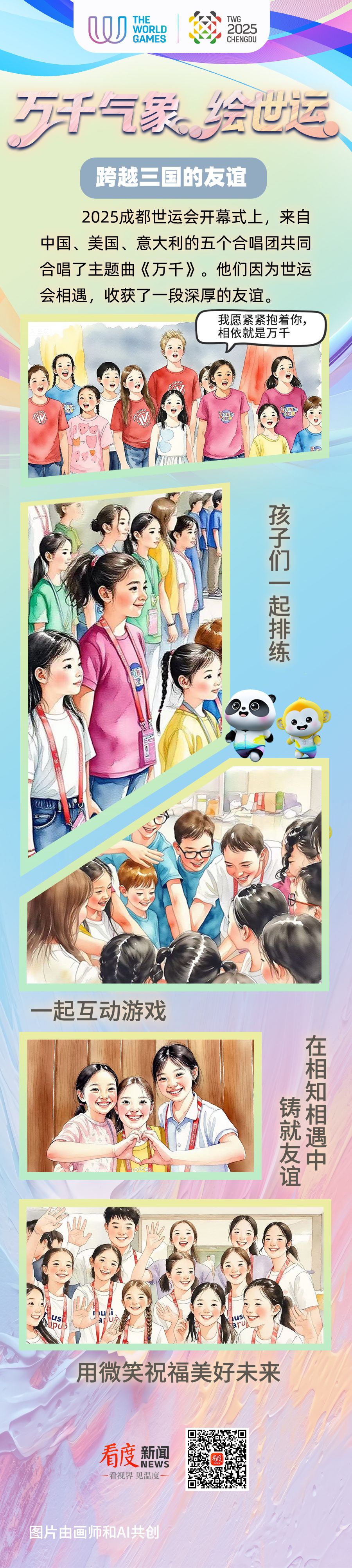 此次成都世运会开幕式,将不同国家的孩子汇聚在一起,用稚嫩而纯真的歌声,唱响对梦想的追逐、对未来的期盼。此刻,音乐化作桥梁,传递中国与世界的友谊,诠释命运共同体的深刻内涵。正如歌曲《万千》中所说:“世界有一个屋檐,相依就是万千。”