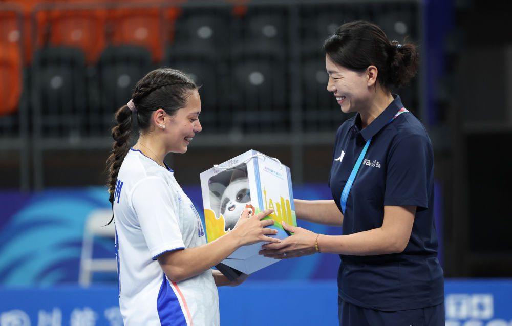 8月9日,成都世运会软式曲棍球比赛结束后,现场响起生日歌,全场为泰国女子软式曲棍球队队员卡尔布姆庆生,成都新都香城体育中心工作人员捧着一只“蜀宝”玩偶,向卡尔布姆送上祝福。