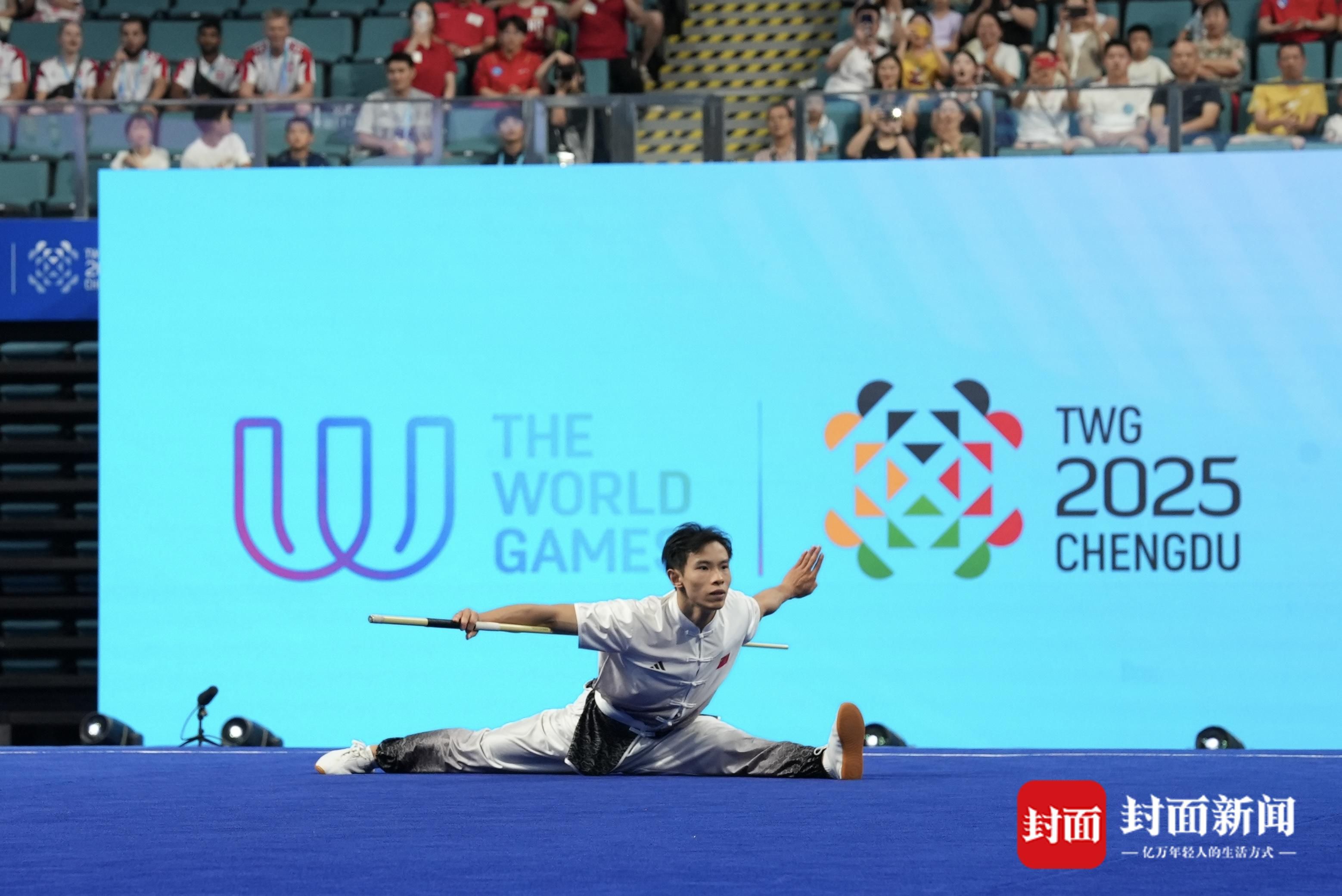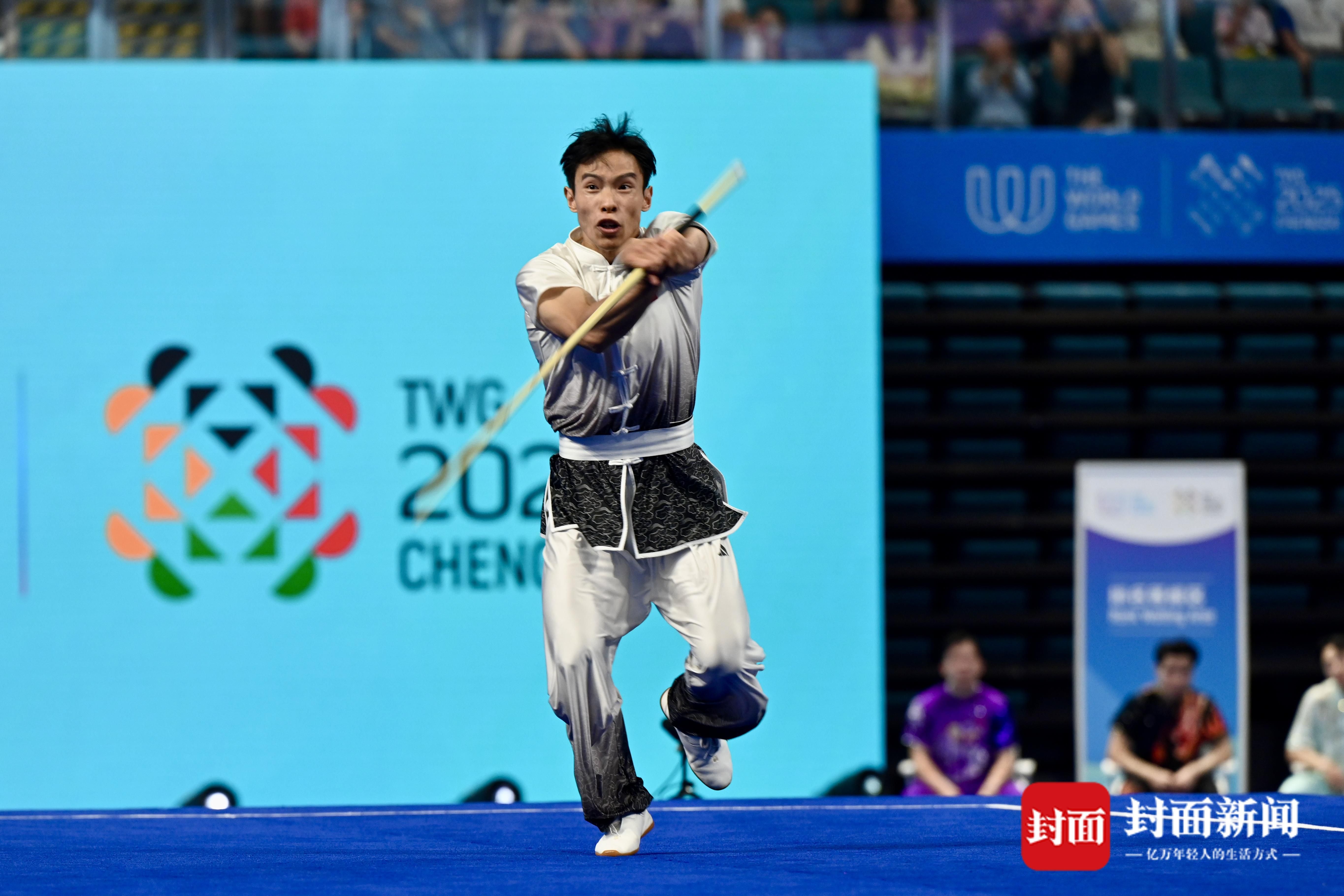 高久尚挥舞着长棍威风凛凛,在世运会的场馆里腾空跃起,落地时,响起欢呼和掌声。8月9日,在第十二届世界运动会武术套路男子长拳-刀术-棍术全能比赛中,中国选手高久尚以29.393的总成绩摘得冠军。这是本届世运会,四川籍选手摘得的首枚金牌。