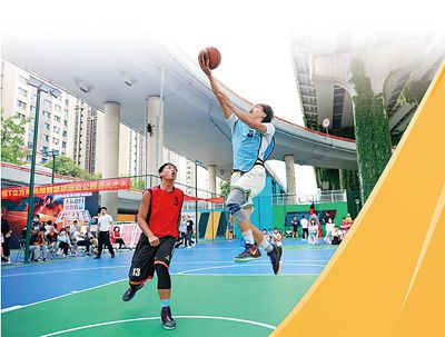 居民在改造后的成都双桥子立交桥下篮球公园运动。刘雨杰摄