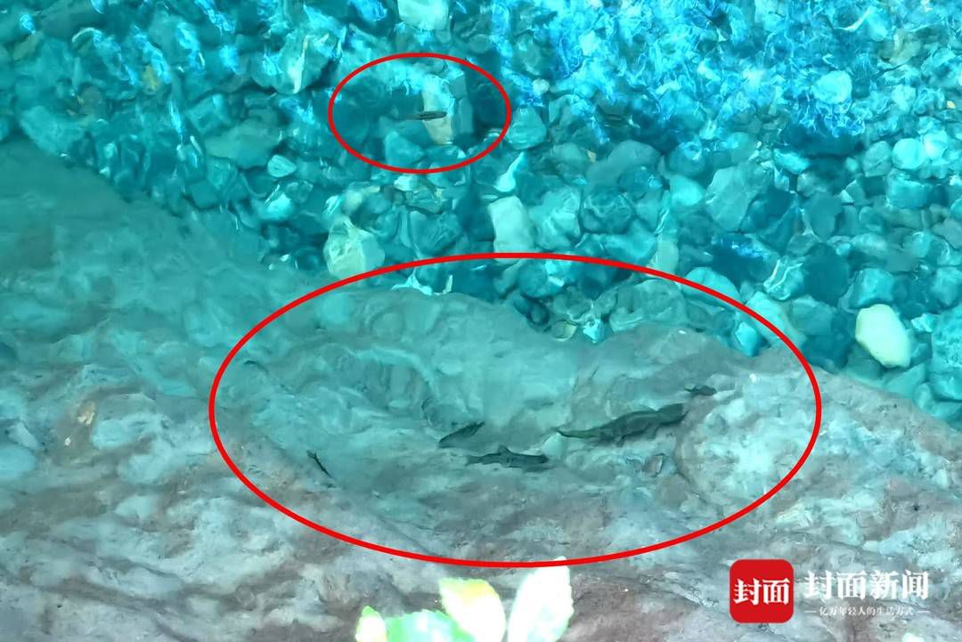 在暗河与溪流交汇处,记者发现了成群的阳鱼,即便是逆流而上,它们的速度也快如闪电。阳鱼的“学名”叫裂腹鱼,也是一种国家二级保护动物,习惯在光线较暗的水域活动,喜欢与游客玩“捉迷藏”。