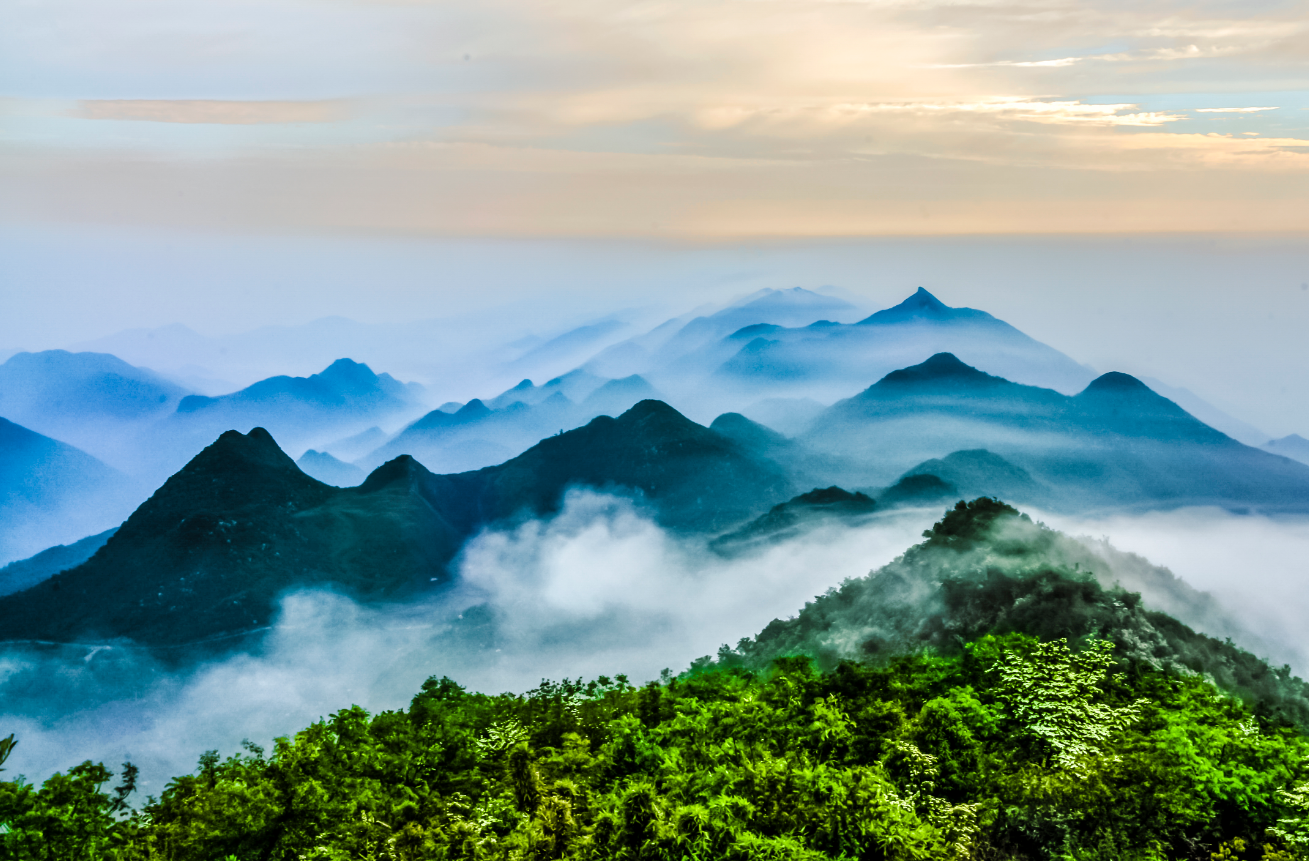 华蓥山脉南北纵跨川渝15个县(市、区),最高峰高登山在广安境内,海拔1704米,也是四川盆地底部最高峰。华蓥山经过亿万年变迁,形成了从寒武纪到侏罗纪的完整地质构造,山间植被丰茂,华蓥山广安段森林覆盖率达95%以上,每立方厘米富含负氧离子16万余个,夏季气温平均22℃。“东朝宝鼎”的鼎盛庄严,“红岩”故里的革命薪火,“三线”建设的工业脊梁,赋予了华蓥山深厚的文化底蕴。