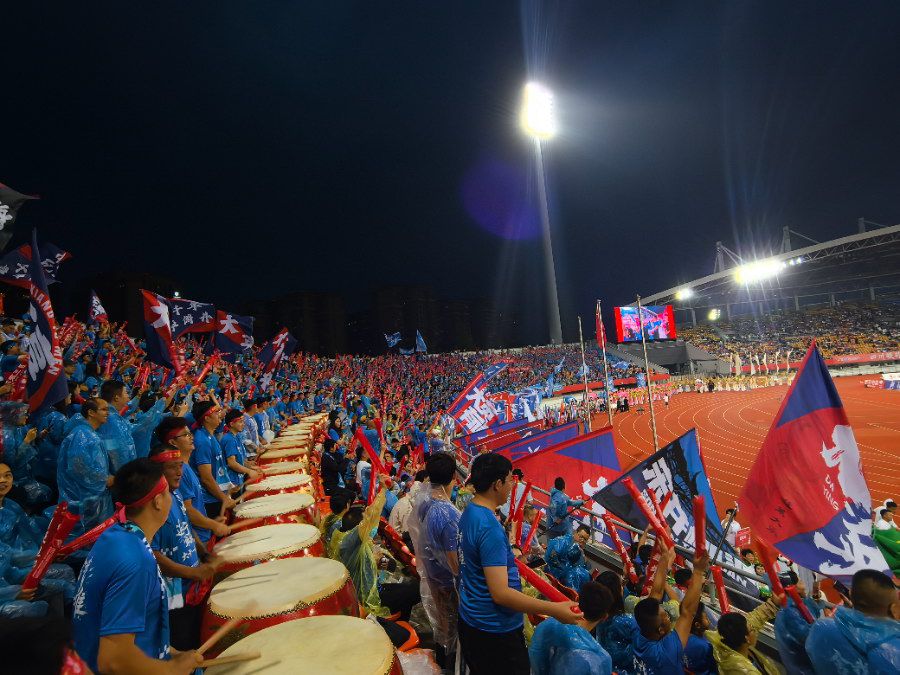 是看台上此起彼伏的助威声浪