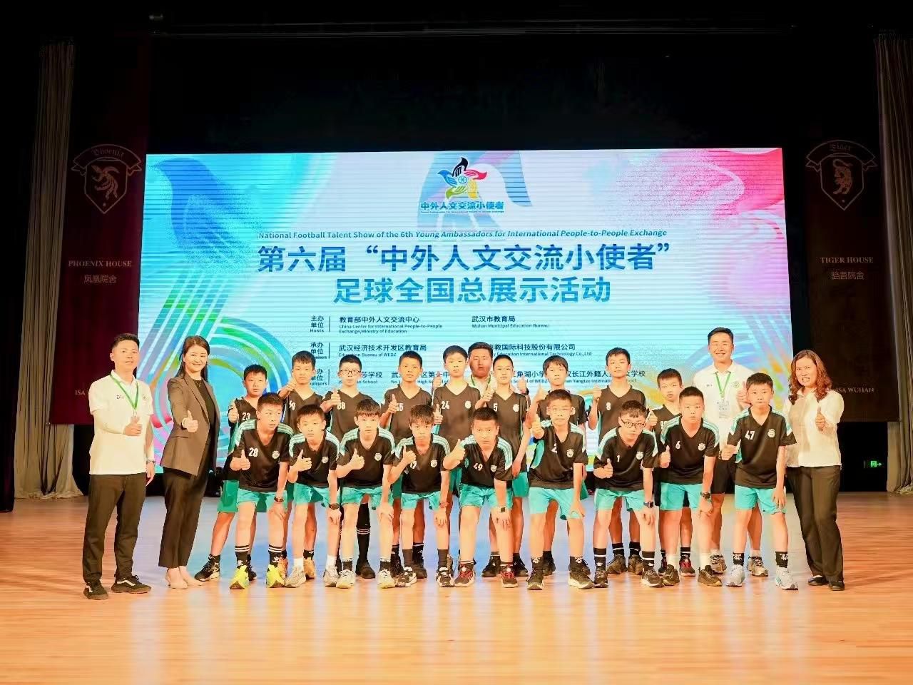 ▲刘宇航(最后一排中间)等教练带领成都上东学校男子足球队外出参赛 受访者供图