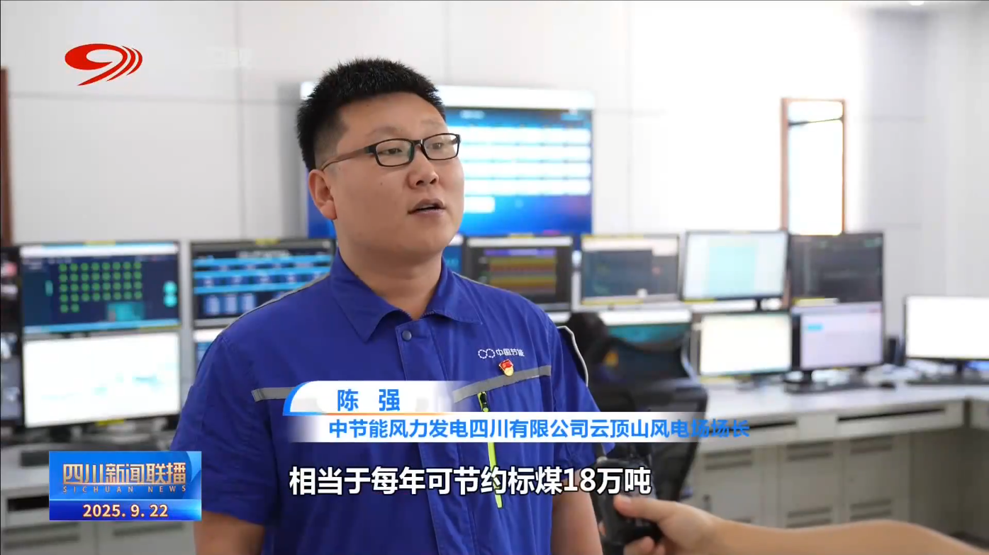 中节能风力发电四川有限公司云顶山风电场场长 陈强:相当于每年可节约标煤18万吨,每年可减少二氧化碳排放量约46万吨、二氧化硫排放量约4200吨。