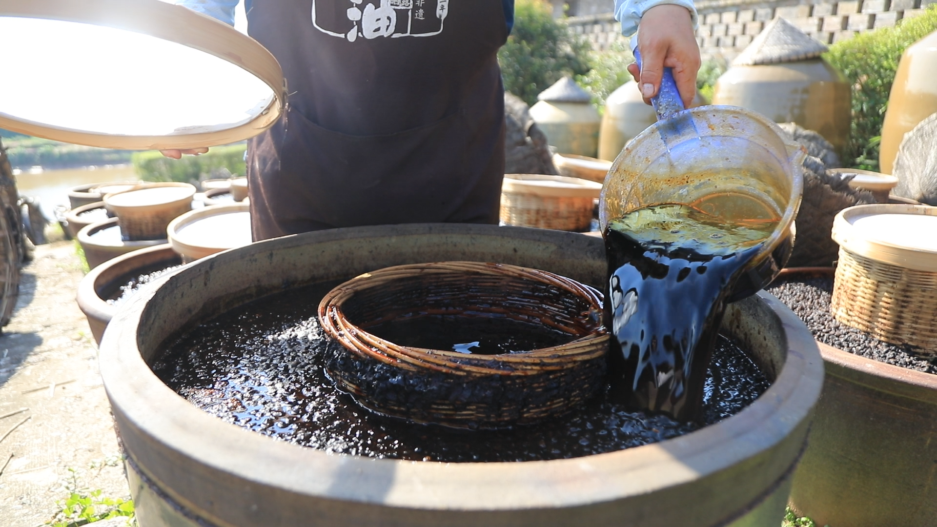 走进先市酱油的晒露发酵场,浓郁酱香扑鼻而来,上千口大缸整齐排列,蔚为壮观。这里保留着中国酱油传统的“日晒夜露”天然发酵工艺,2014年,“先市酱油传统酿制技艺”还入选了国家级非物质文化遗产。