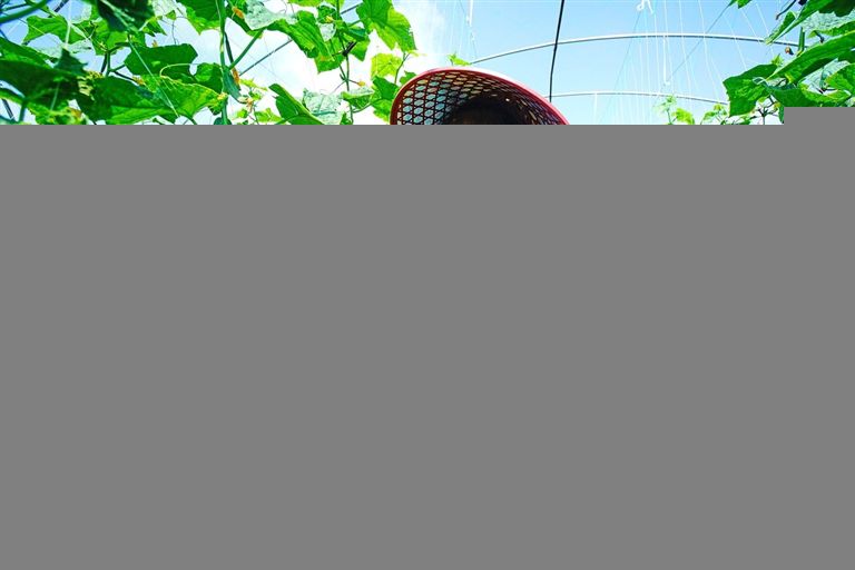 射洪市沱牌镇正豪家庭农场内,村民正在采摘黄瓜。全媒体记者 何飞 摄