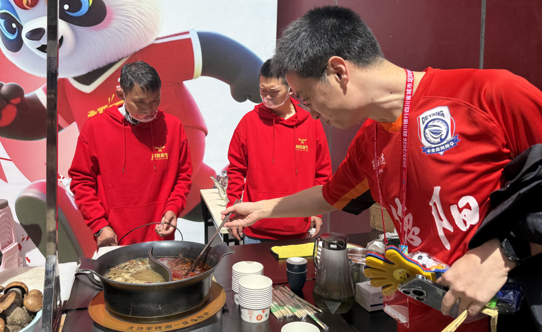 现场两口锅同时炖煮着正宗牦牛肉和野生菌,不少客队球迷像阳先生一样,被这舌尖上的诱惑所吸引。“牦牛汤锅的‘攻势’太狠了,谁还顾得上喊防守啊!”同为德阳球迷的毛女士也被一碗碗牦牛肉汤香迷糊了。
