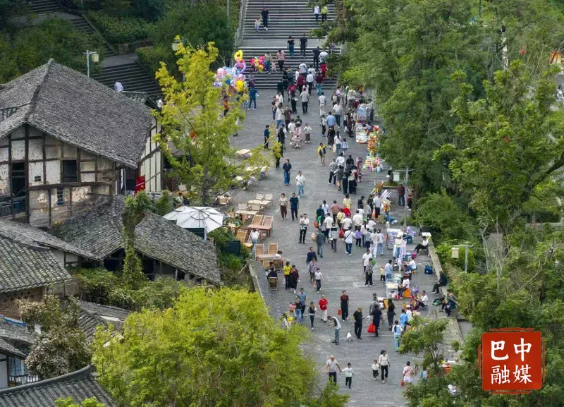 游客在恩阳古镇游玩