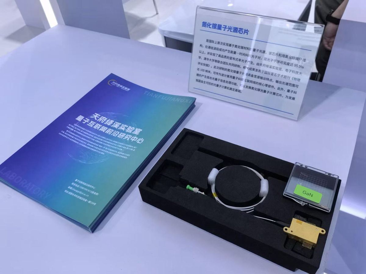世界首个氮化镓量子光源芯片亮相高交会,该芯片由天府绛溪实验室研制。(图片由天府绛溪实验室提供)