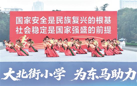 在东坡湖广场,大北街小学学生表演舞蹈,为参赛选手加油助威。眉山融媒记者 廖波 摄