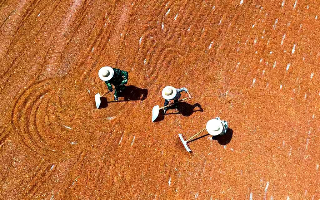 石屏镇农户正在晾晒高粱 刘媛 摄