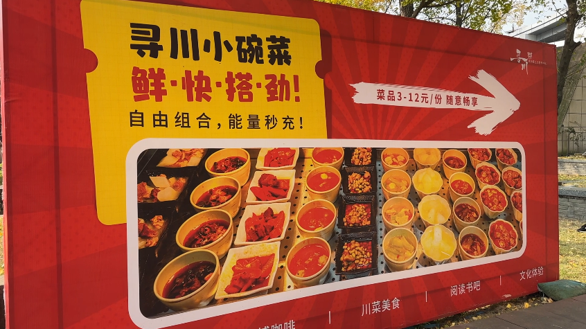 一进川博的寻川·博物馆生活体验中心餐厅,瞬间被排满柜台的小碗菜惊到——60多种菜品涵盖凉菜、炒菜、炖菜、蒸菜,妥妥的川味家常菜合集。3元就能get清爽开胃的川北凉粉、凉拌茄子,5元的麻婆豆腐麻辣鲜香,12元的回锅肉、板栗红烧肉直接把荤菜性价比拉满。算下来一荤一素一汤,人均20块出头就能吃得满足,难怪不到中午就排起长队,座无虚席。