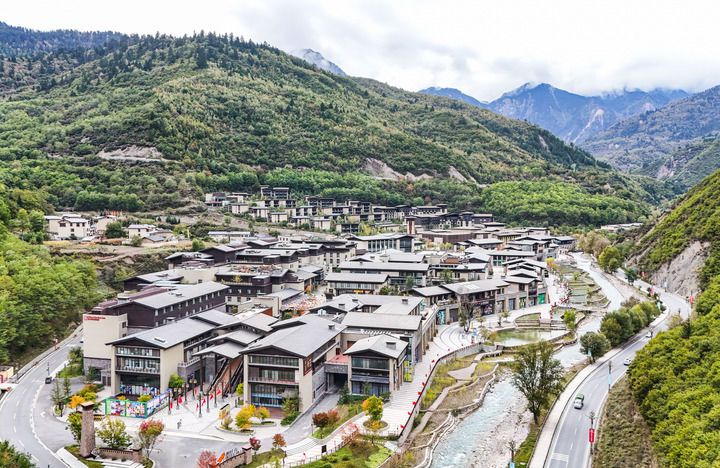 这是2024年10月10日在九寨沟县拍摄的华美胜地度假区(无人机照片)。新华社记者 王曦 摄