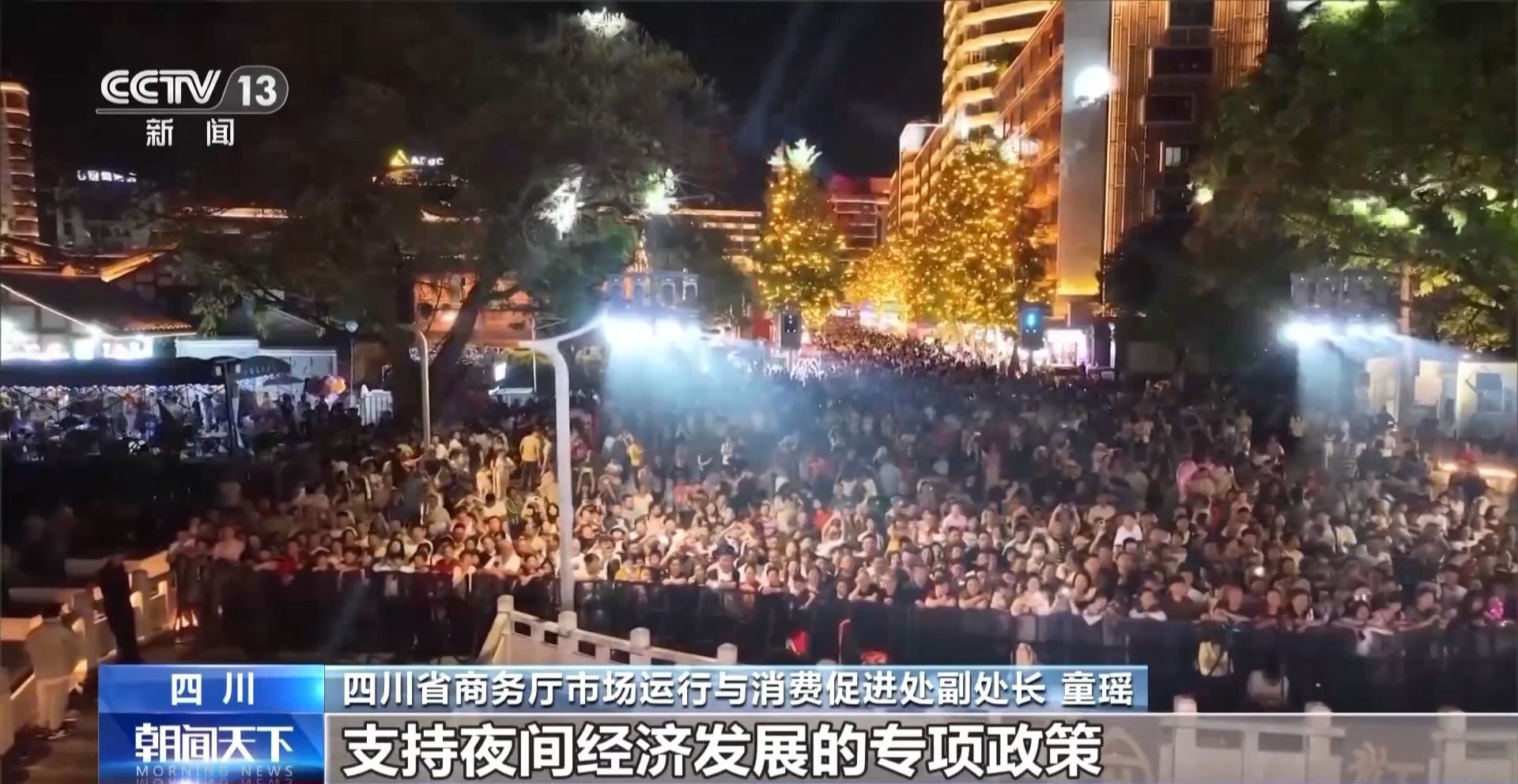 四川省商务厅市场运行与消费促进处副处长 童瑶:夜间经济是扩内需促消费稳就业的重要抓手,四川有一半以上的消费都是发生在夜间。下一步,全省将出台支持夜间经济发展的专项政策,培育发展多元融合的夜间消费场景业态,打造全国有影响力的夜间消费标杆场景。