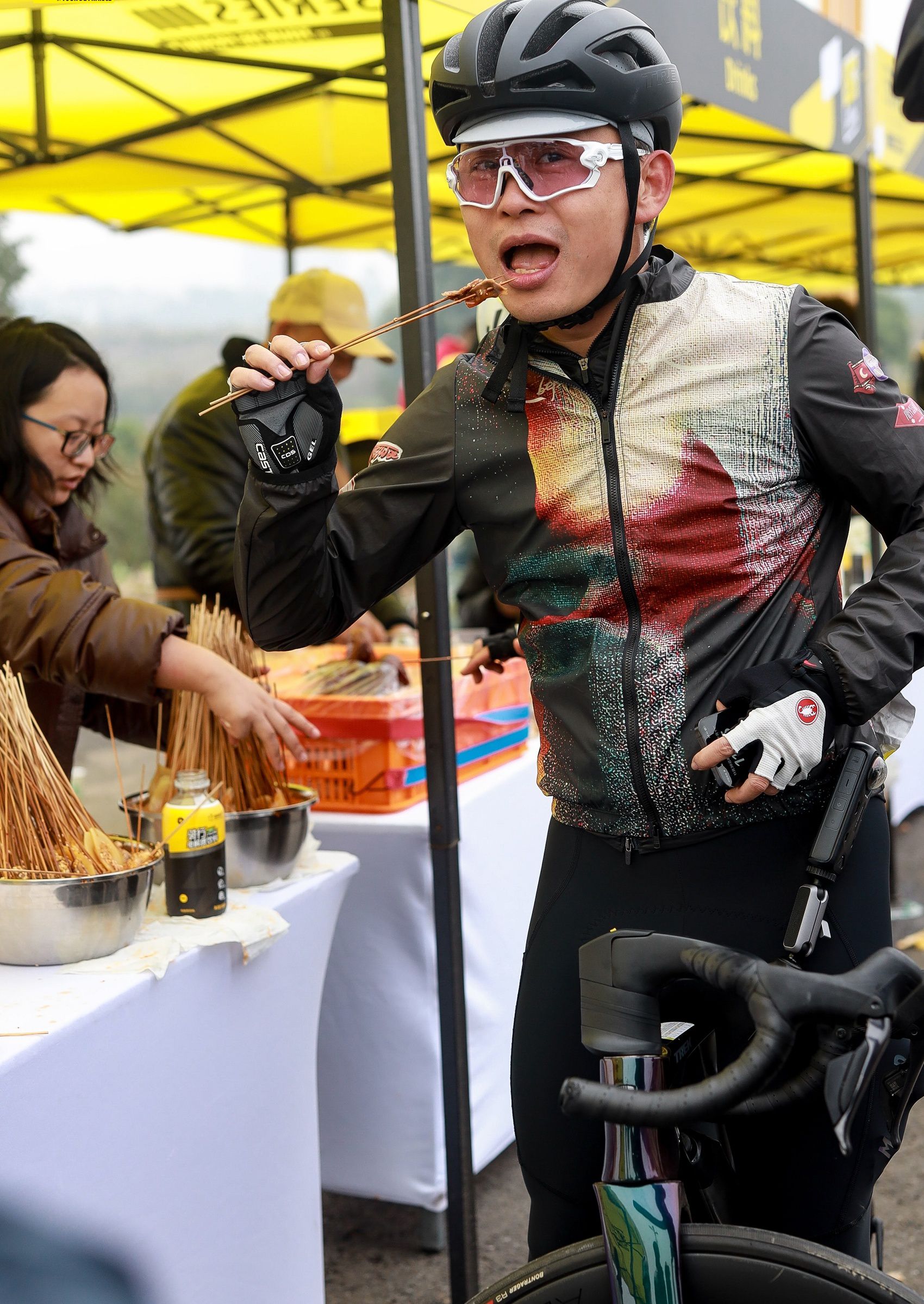 2025环法挑战赛·乐山站参赛选手赛中品尝乐山美食(赛事主办方供图)