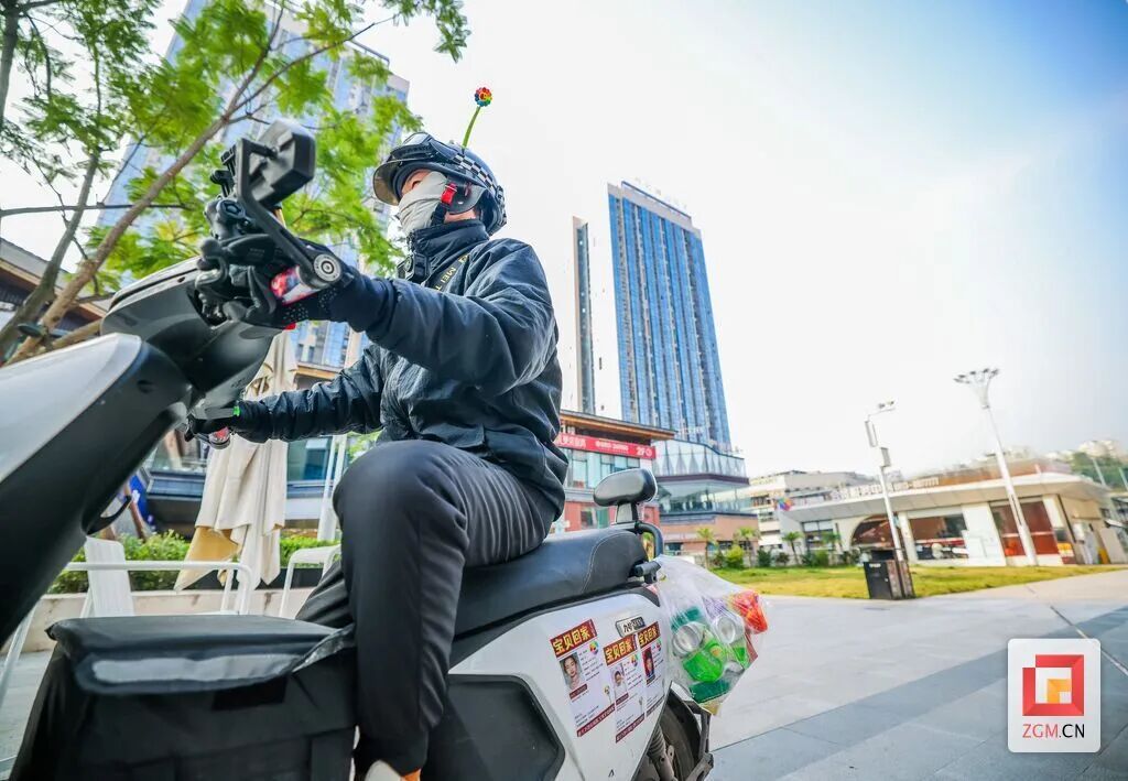配送途中,黄一鹤见到路边的饮料空瓶都会“刹一脚”,捡起来放进挂在小电驴后座的袋子里——等收集满一袋后就送给遇见的捡废品老人和环卫工,偷偷放在他们的脚边或小推车上。对方发现后,往往会发自内心说一声“谢谢!”