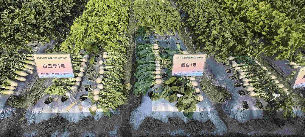 这几日,正在举行的第11届成都种业博览会(秋季)蔬菜新品种田间展示会试验田里,几十种大大小小,形状各异的白萝卜排列在一起。