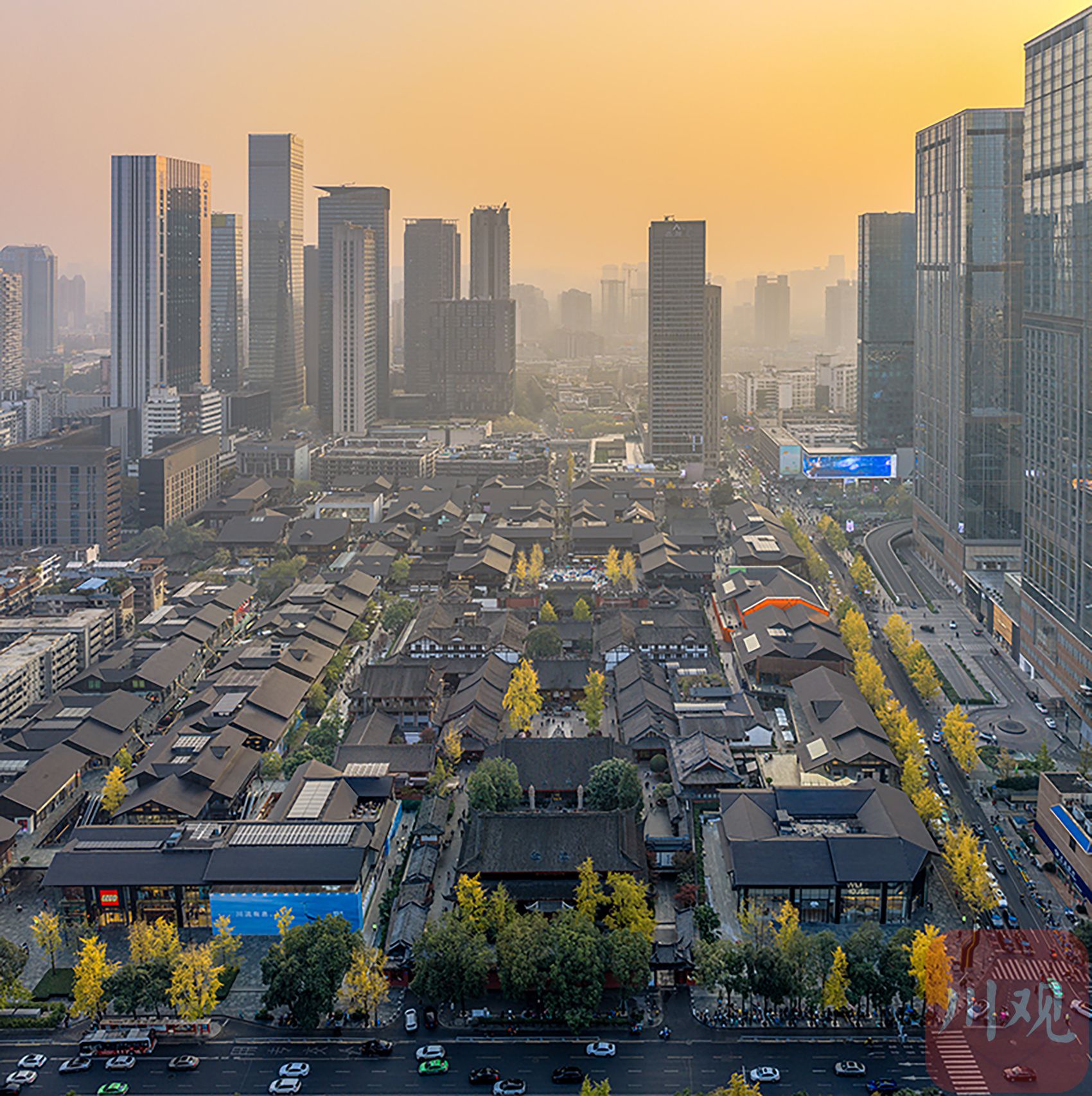 11月30日,夕阳下的大慈寺与太古里一道,绘就出初冬“成都封面”。C视觉签约摄影师 王瑞林