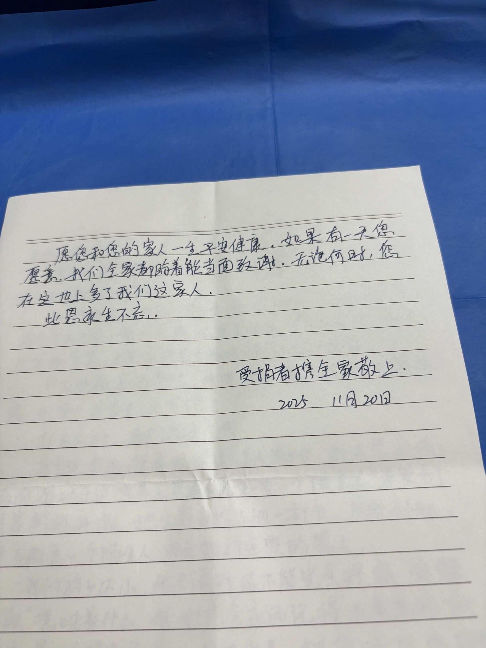 患者家属写:“语言太轻,承载不了这样的恩情。”