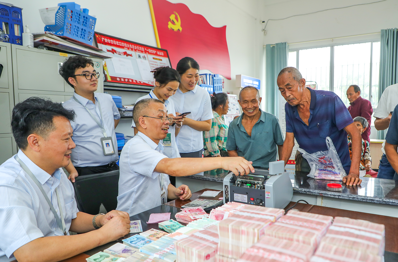 大良村村民排队领取“分红”。