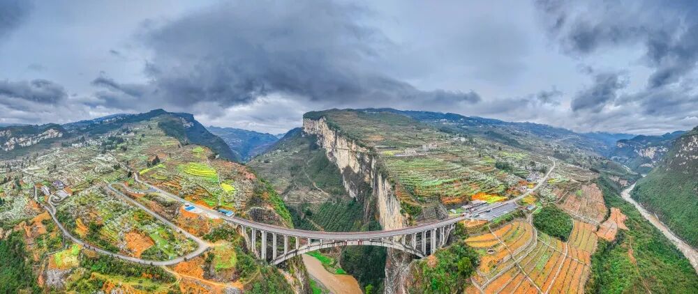 无人机飞过鸡鸣三省大桥,壮阔的景致尽收眼底。