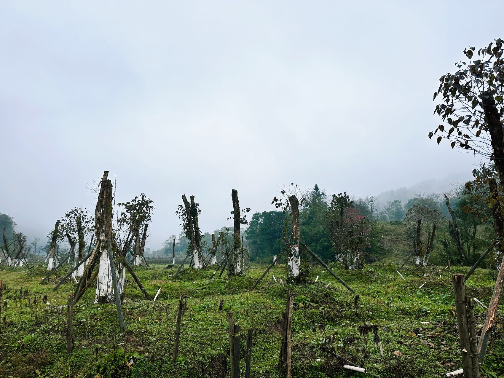 今年春天,第一批小树苗进行了栽种,现在它们看起来还是光秃秃的,只有手臂长、筷子粗,显得有点弱小。彭建介绍,幼苗可能会受牛羊啃噬,生存还面临很大挑战,需要管护人员悉心照料。随着时间推移,这些小树苗将逐渐扎根、抽枝散叶。这片区域有望成为珙桐种群恢复的重要基地,也为其他珍稀植物的保护提供宝贵经验。