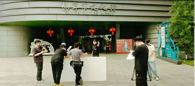 微短剧《我在文化馆当保安2我的搭子是“大佬”》拍摄现场。遂宁市文化馆供图