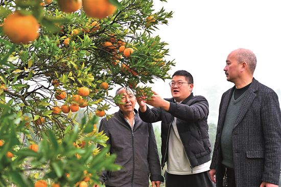 水利兴则农业稳,农业稳则产业兴。走进一心村,除了阡陌纵横的良田,更引人注目的是处处绿意盎然的果园。“以前咱们村大多种的是老品种红桔,口感一般、价格偏低,丰收了也愁销路。”吴郑指着枝头挂满青果的橘树介绍,为了让果园产出“金果果”,村里大力推进品种改良,引进优质柑橘种苗,淘汰低效老品种。同时,积极链接农业技术专家,把课堂搬到田间地头,开展种植技能培训,累计覆盖120余名农户。为了让技术服务不脱节,村里还建立了农户微信交流群,专家在线实时答疑、农户随时分享经验,从施肥用药到修剪管护,全方位的技术支持让村民们种得更有底气。